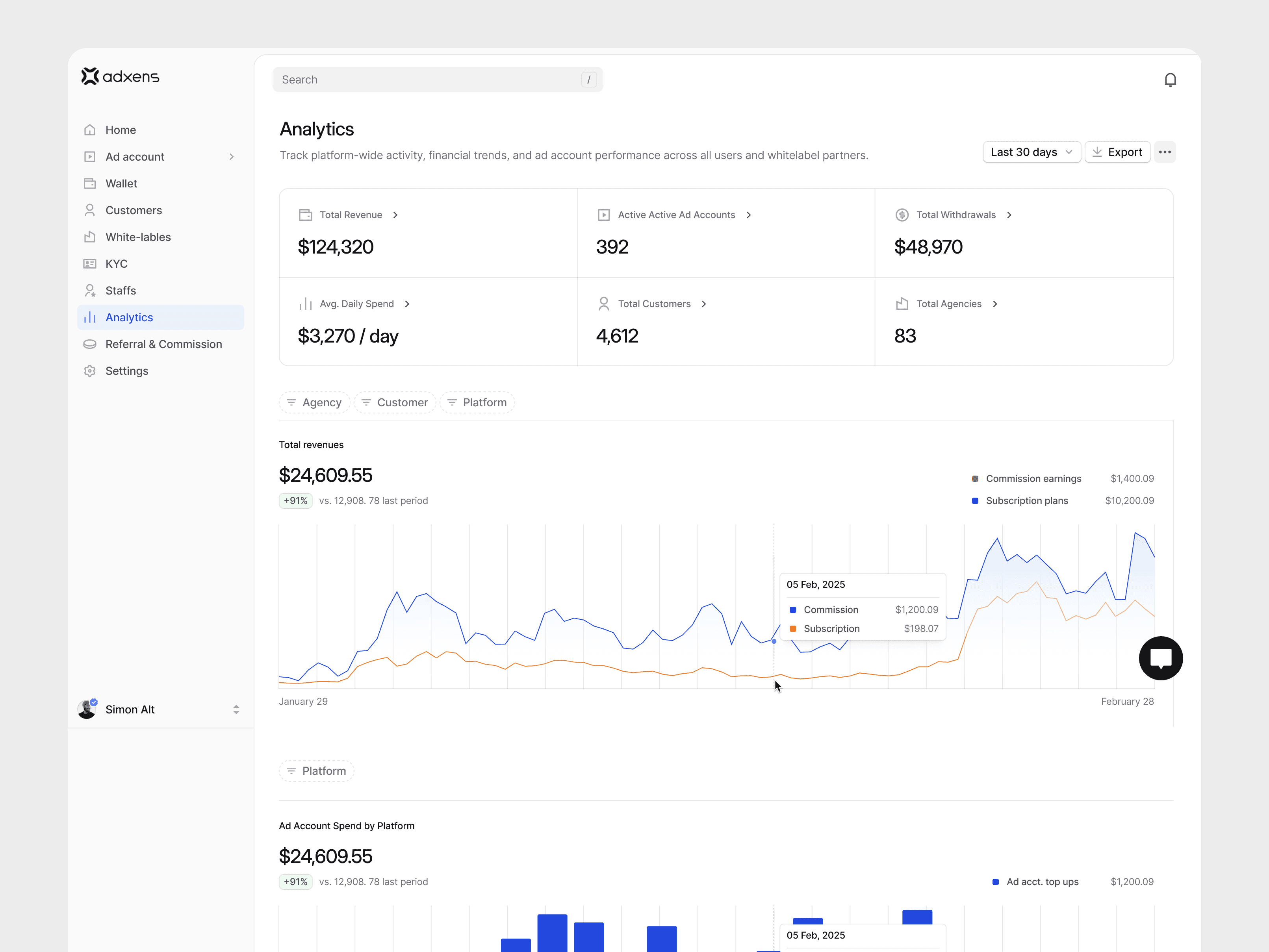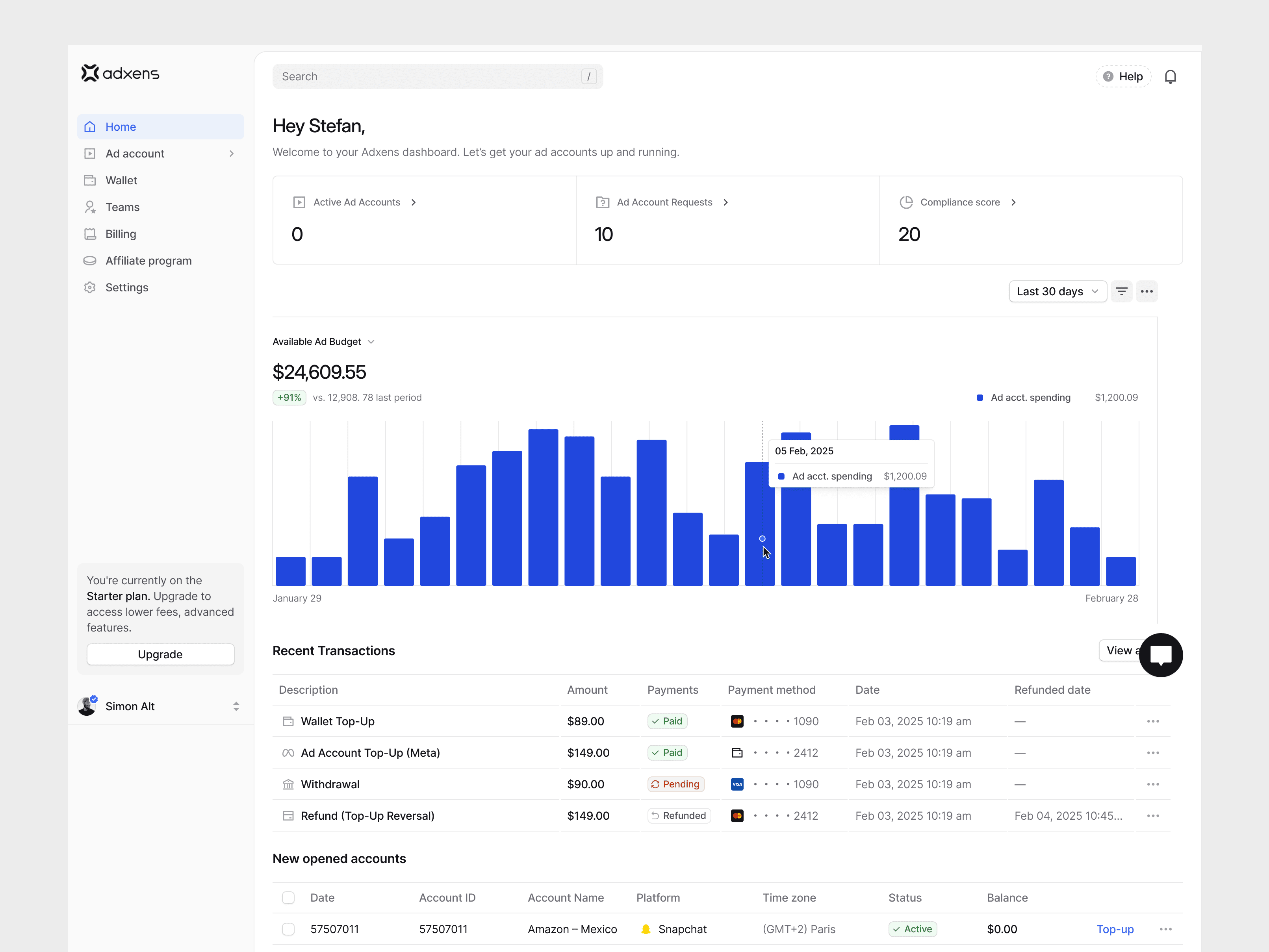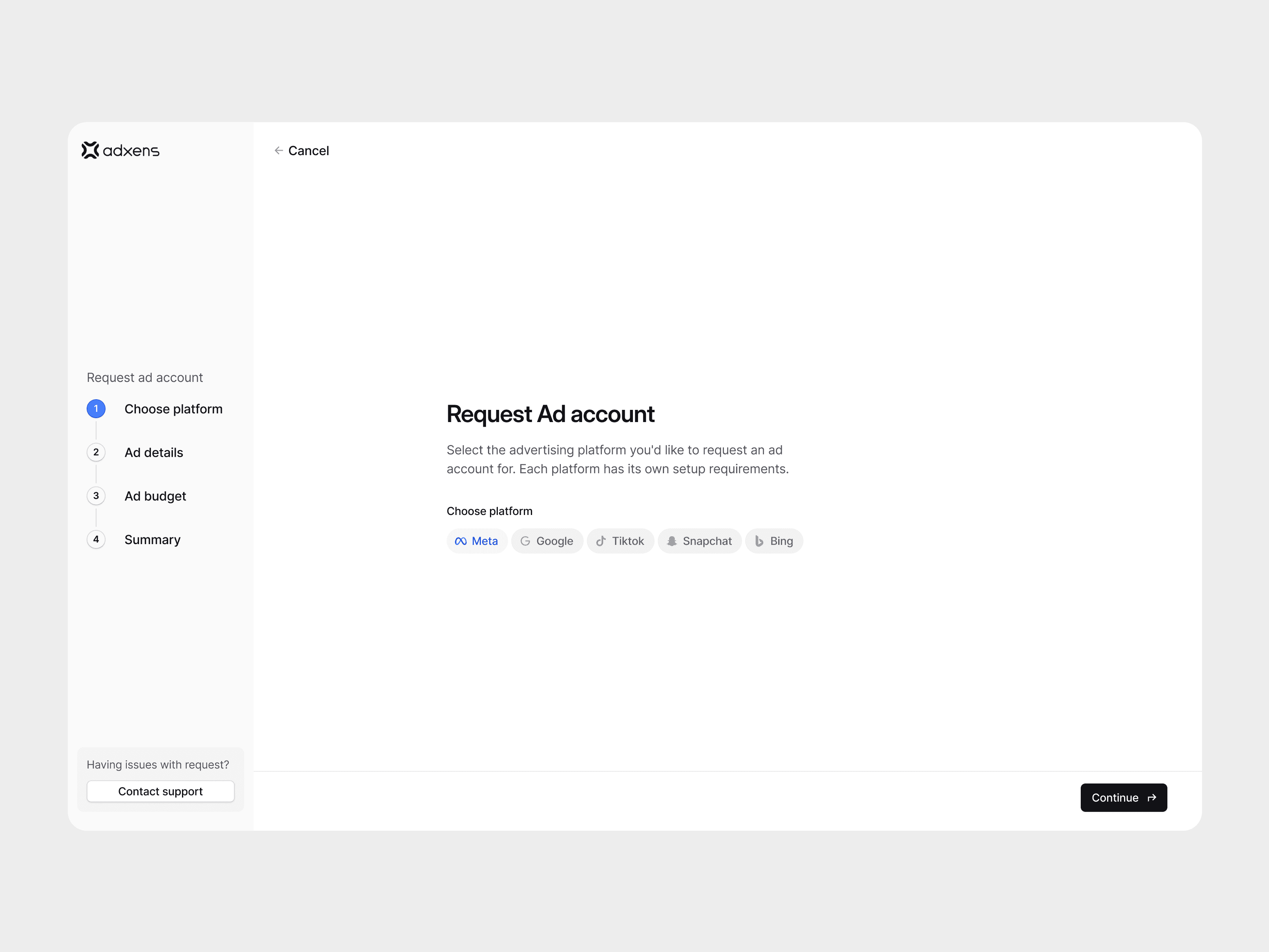Adxens simplifies the process of requesting, funding, and managing advertising accounts — while also providing wallet infrastructure, transaction tracking, team roles, and whitelabel capabilities for agencies.