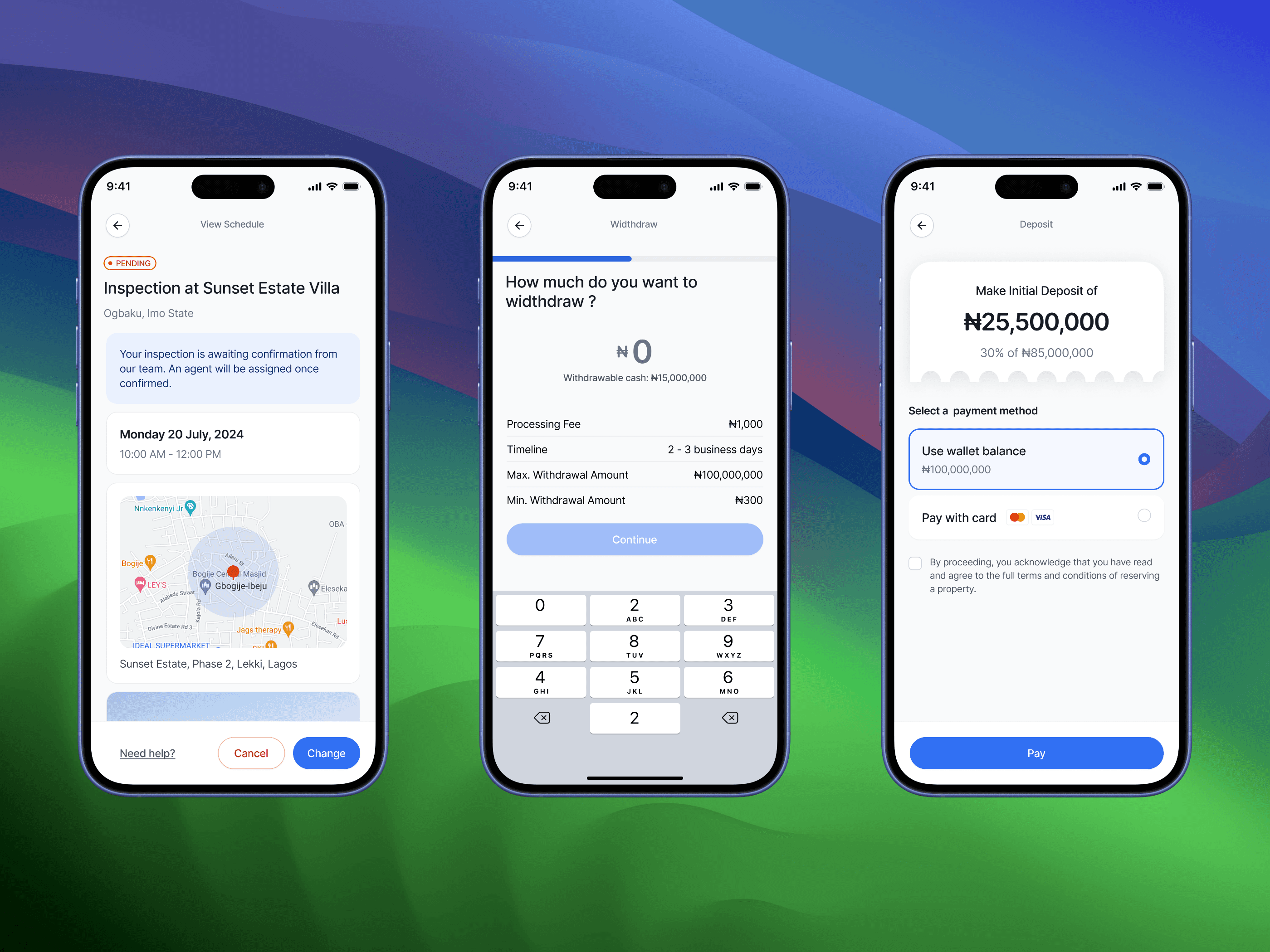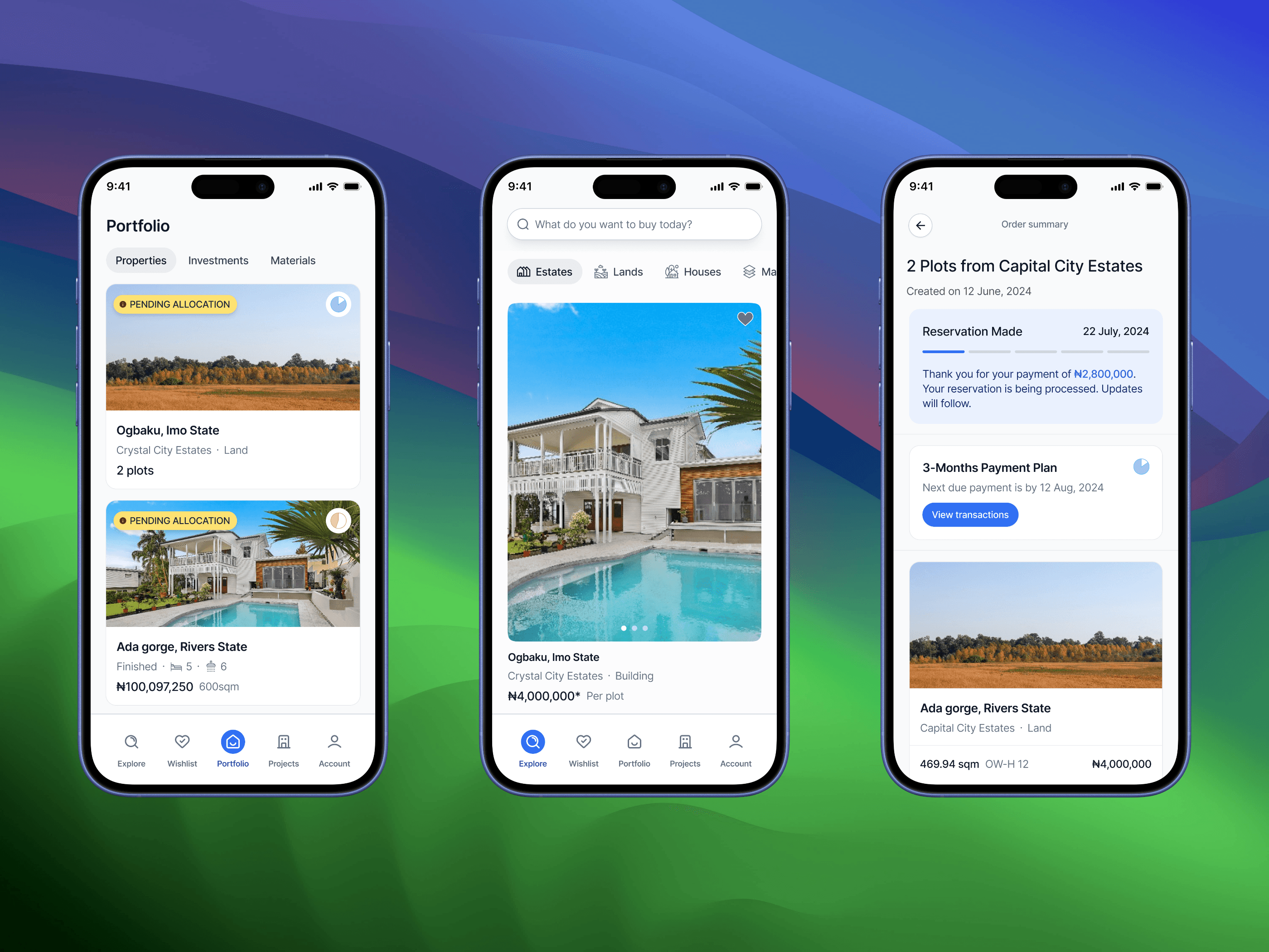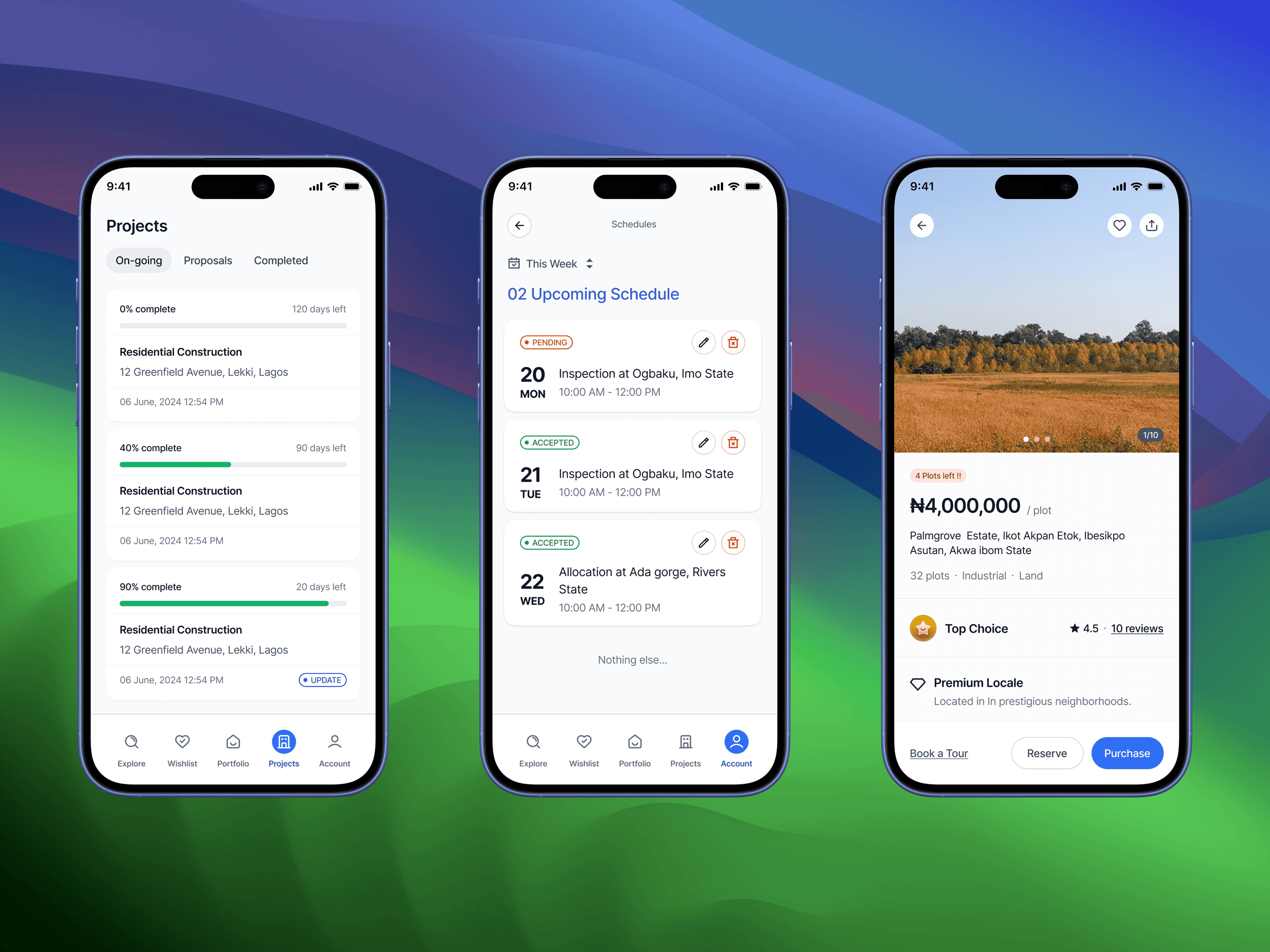 Designed an intuitive user flow that streamlined property exploration, wallet funding, and project tracking.
